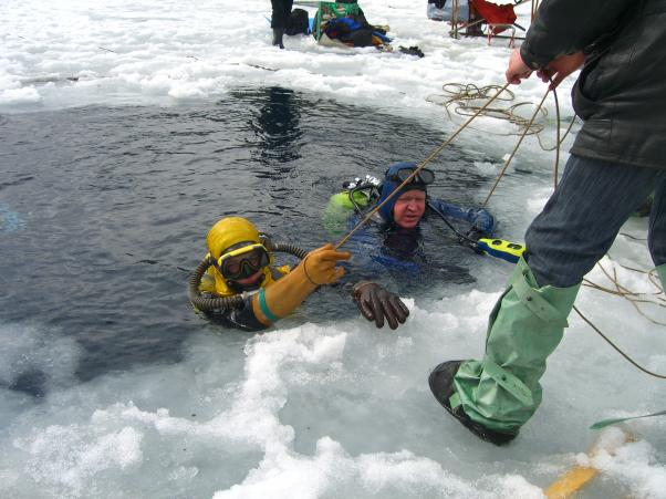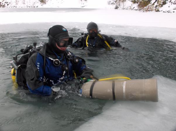 Это и недостаток опыта (OWD и AOWD получены в течении осени, да дайвов немного, а уж под лёд единицы). Энтузиазма видимо у человека много( а таких, как я знаю много), а поддержки мало. Поддержки в смысле напарников и более опытных друзей.
